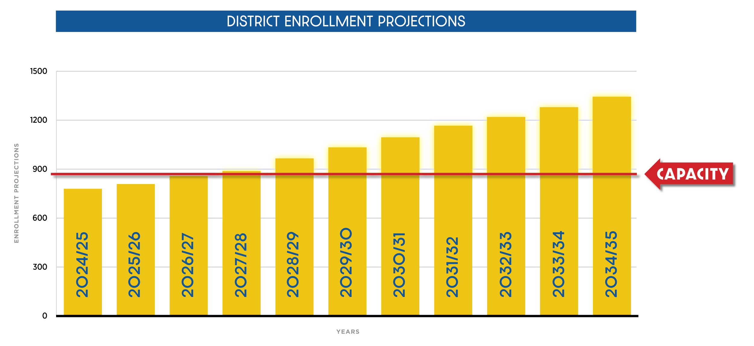 Bland ISD is preparing for rapid enrollment growth, with over 2,800 planned residential lots planned in the area. Enrollment is projected to increase from 780 students in 2024 to 1,344 by 2034— more than 70% over the next decade.