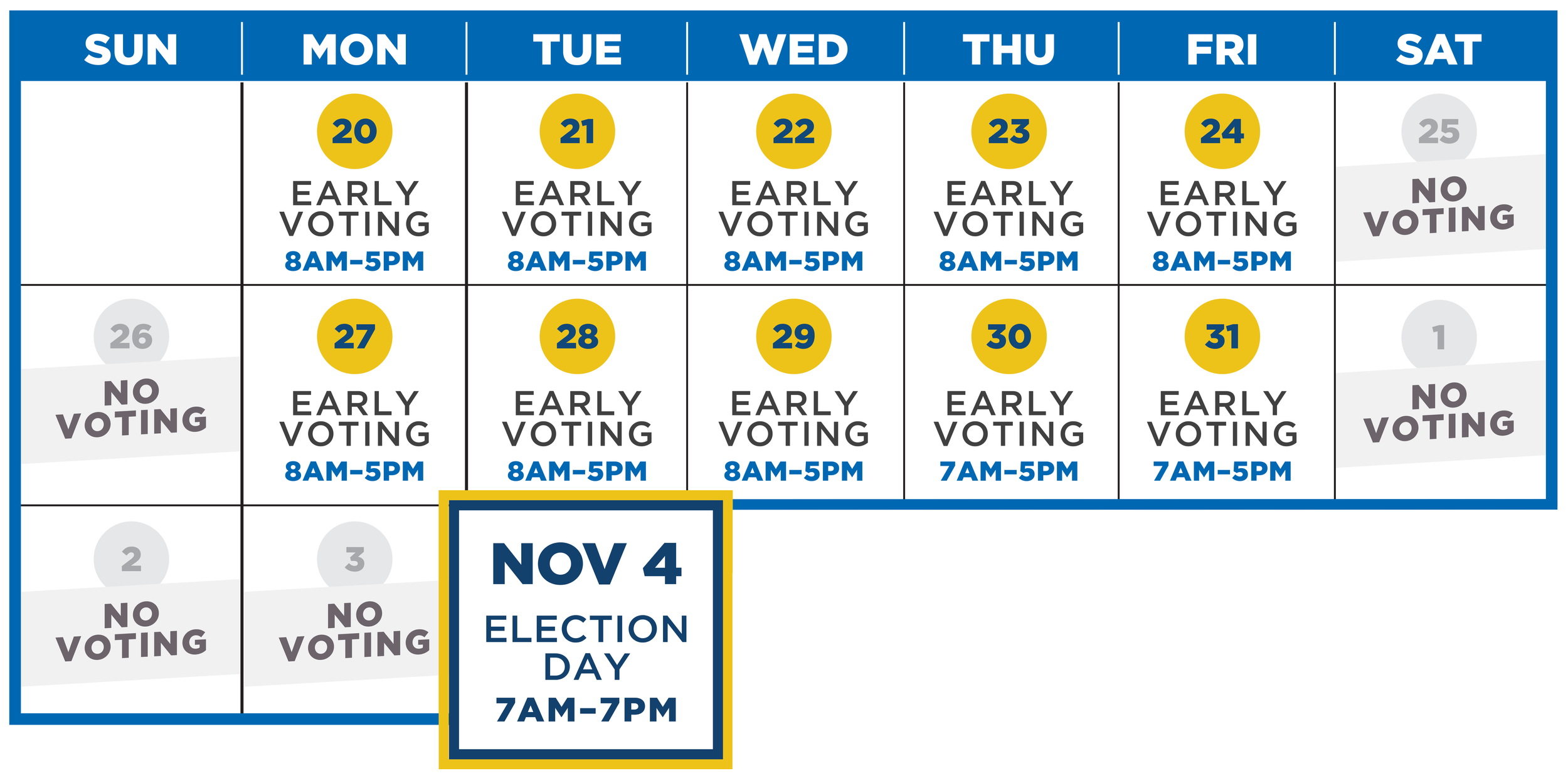 All polling locations are open from 7:00 AM - 7:00 PM.
